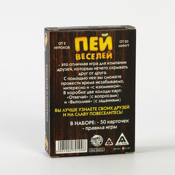 Купить игра для компании "пей веселей" 50 карт от 180 руб. с доставкой до пункта выдачи в Плёсе. Интернет магазин ДекаМаркет. Оплата при получении.